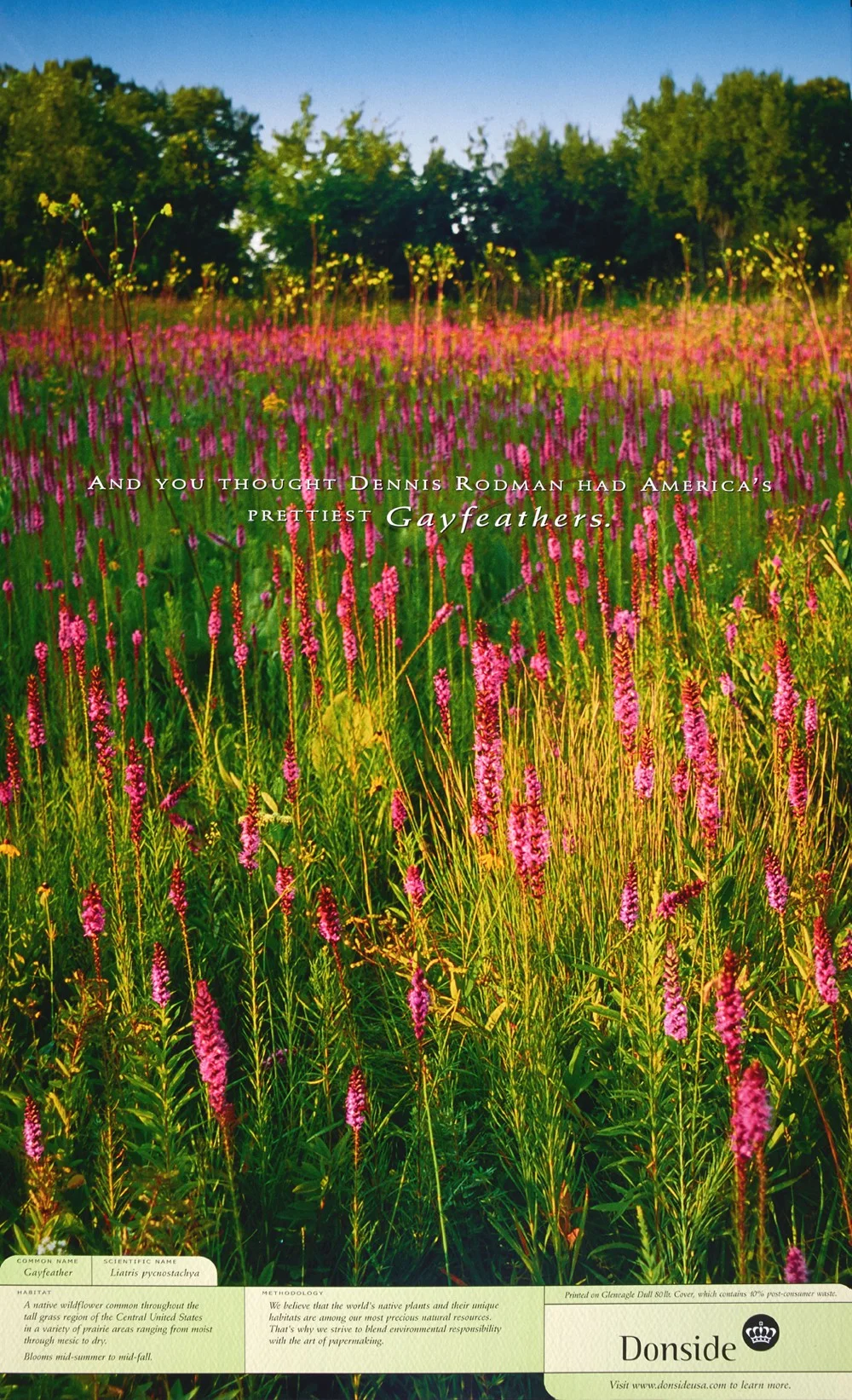 So, turning to his native Midwest for inspiration, Dave Redemann developed a series of posters for Donside featuring native plants and their oddball names. By juxtaposing snarky headlines with gorgeous photos of prairie flora, these posters drew attention to the fine paper stock upon which they were printed.